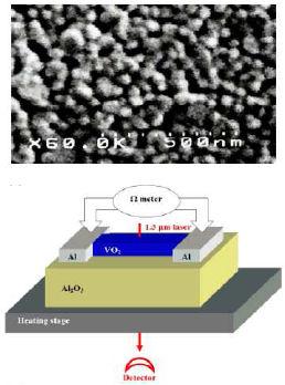 Vanadium dioxide falls into the category of smart materials because it undergoes a semiconductor to metal phase transition at the convenient temperature of 68 oC. This transition is accompanied by large modifications of its optical and electrical properties which suggests its use in window coatings, infrared sensors or opto-electronic memories and switches.